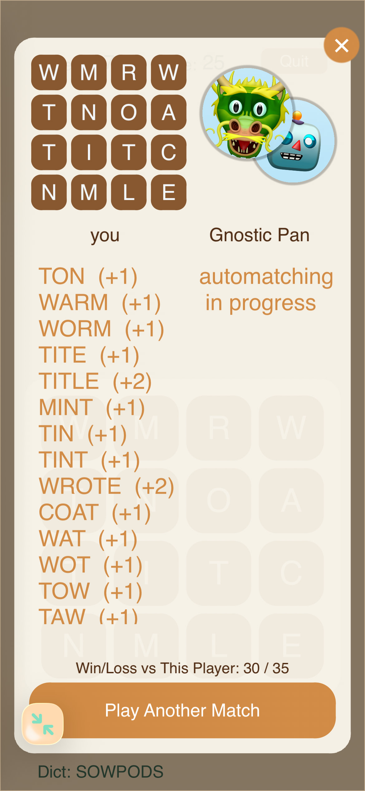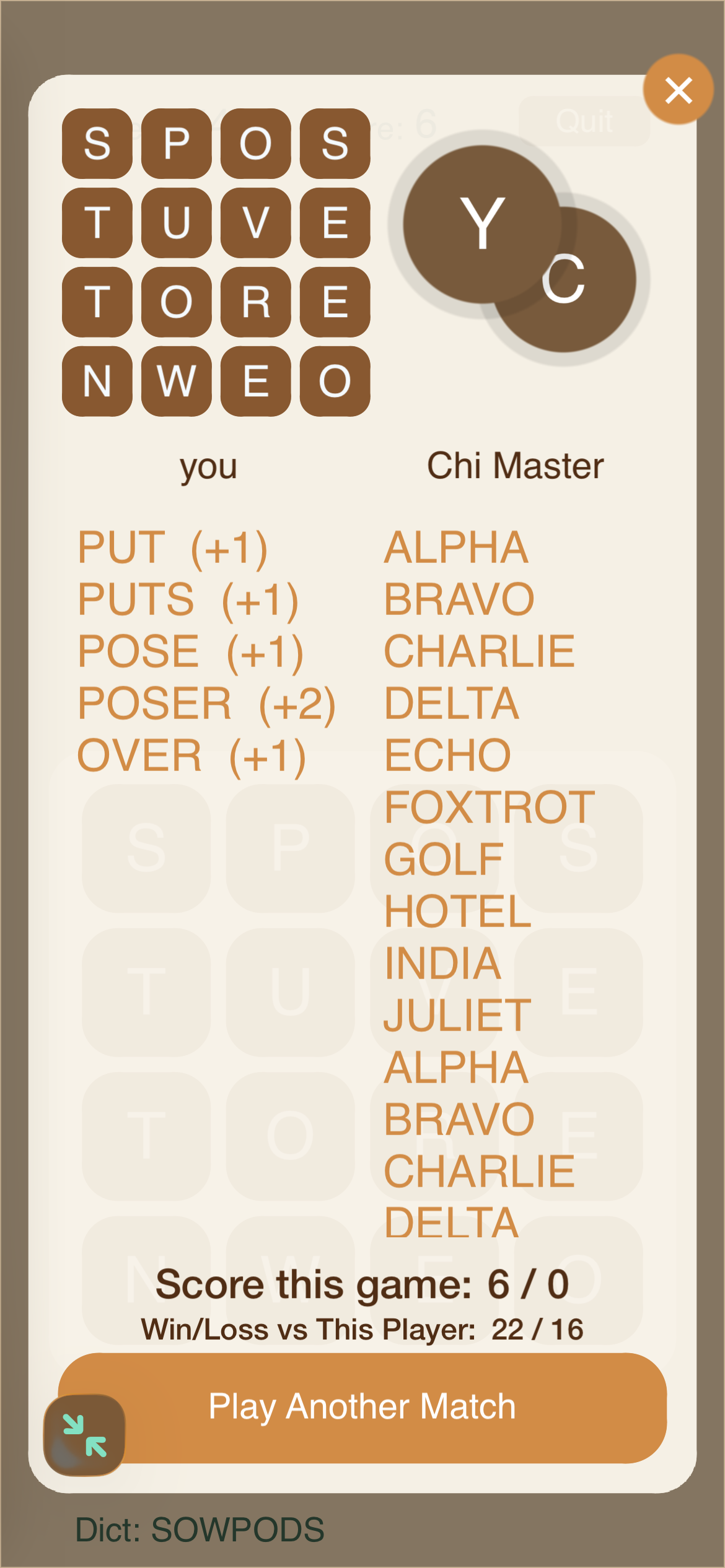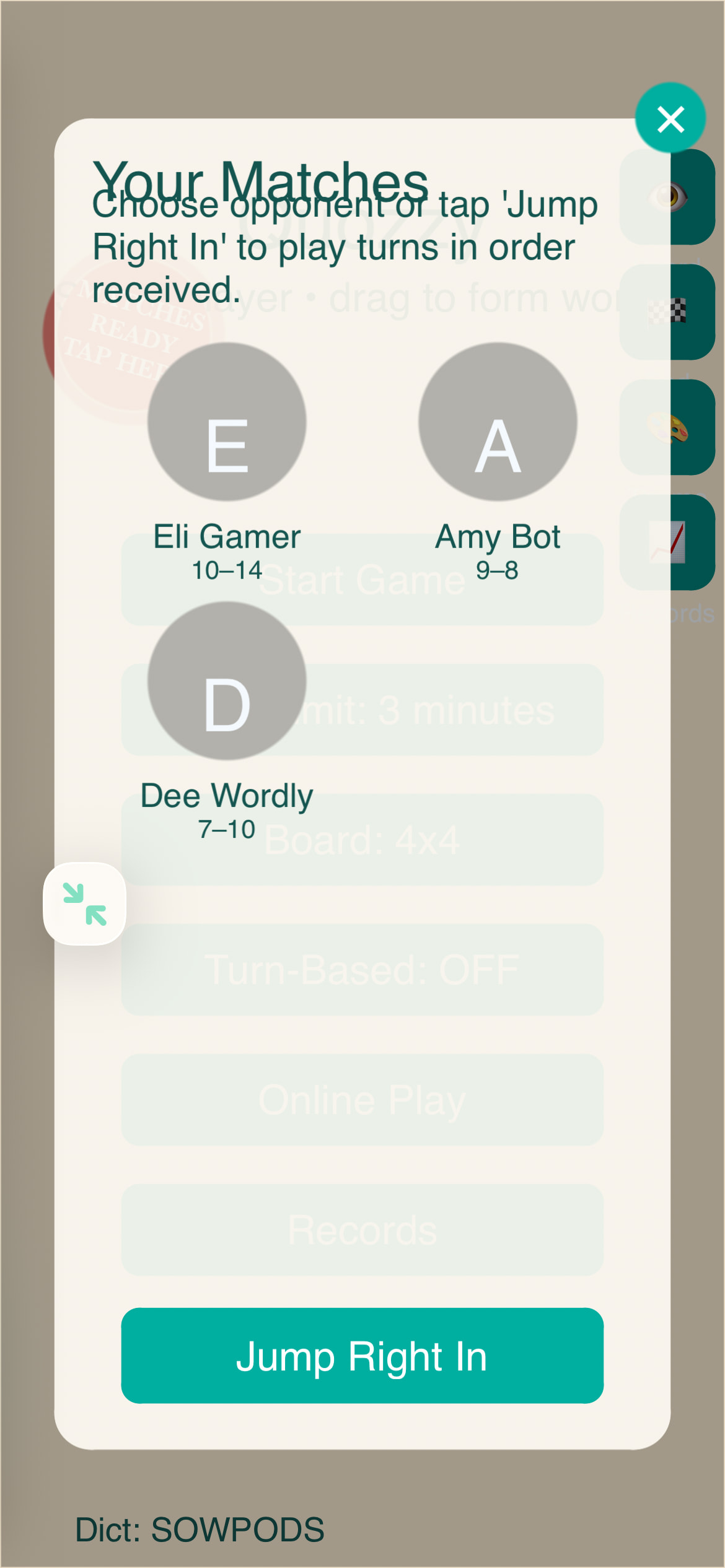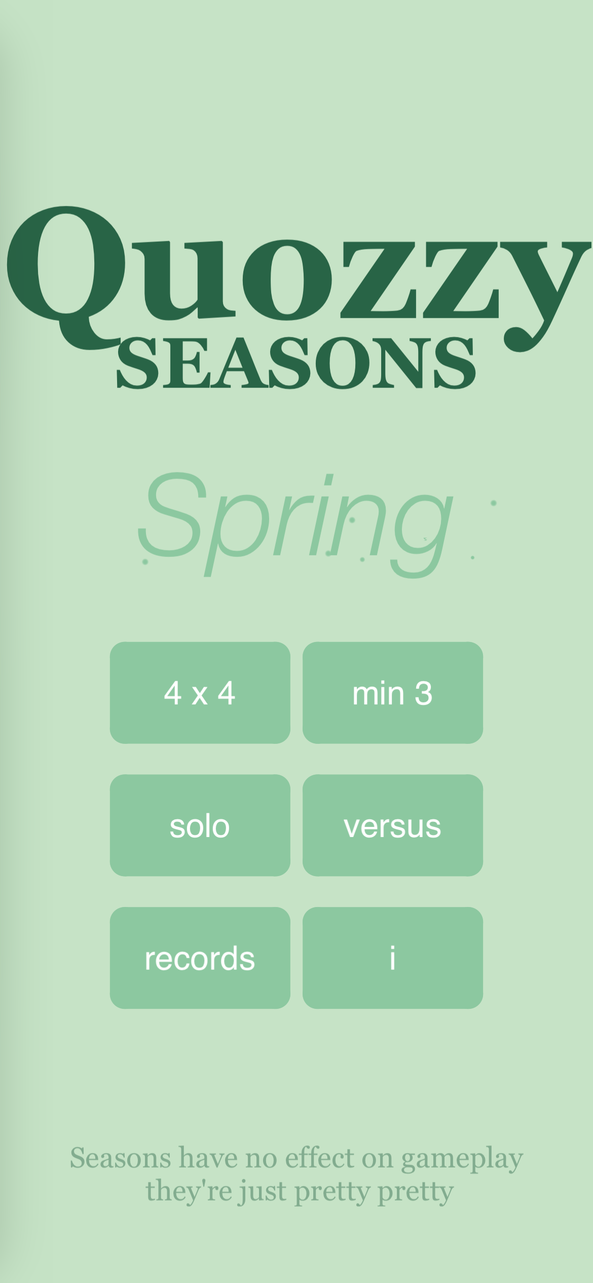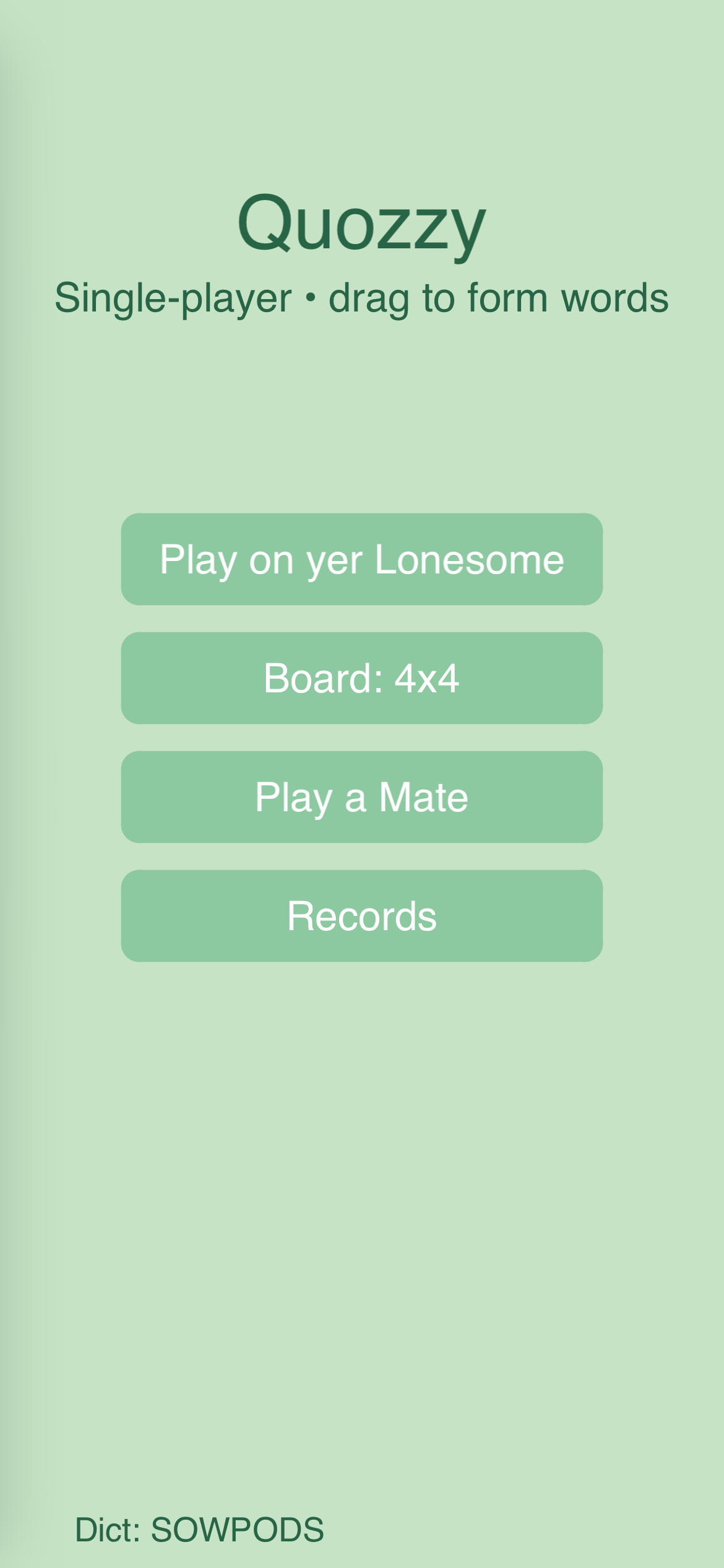….and that brings us to the current one, Quozzy, a boggle clone with a slight customization that I hope will please my wife:
