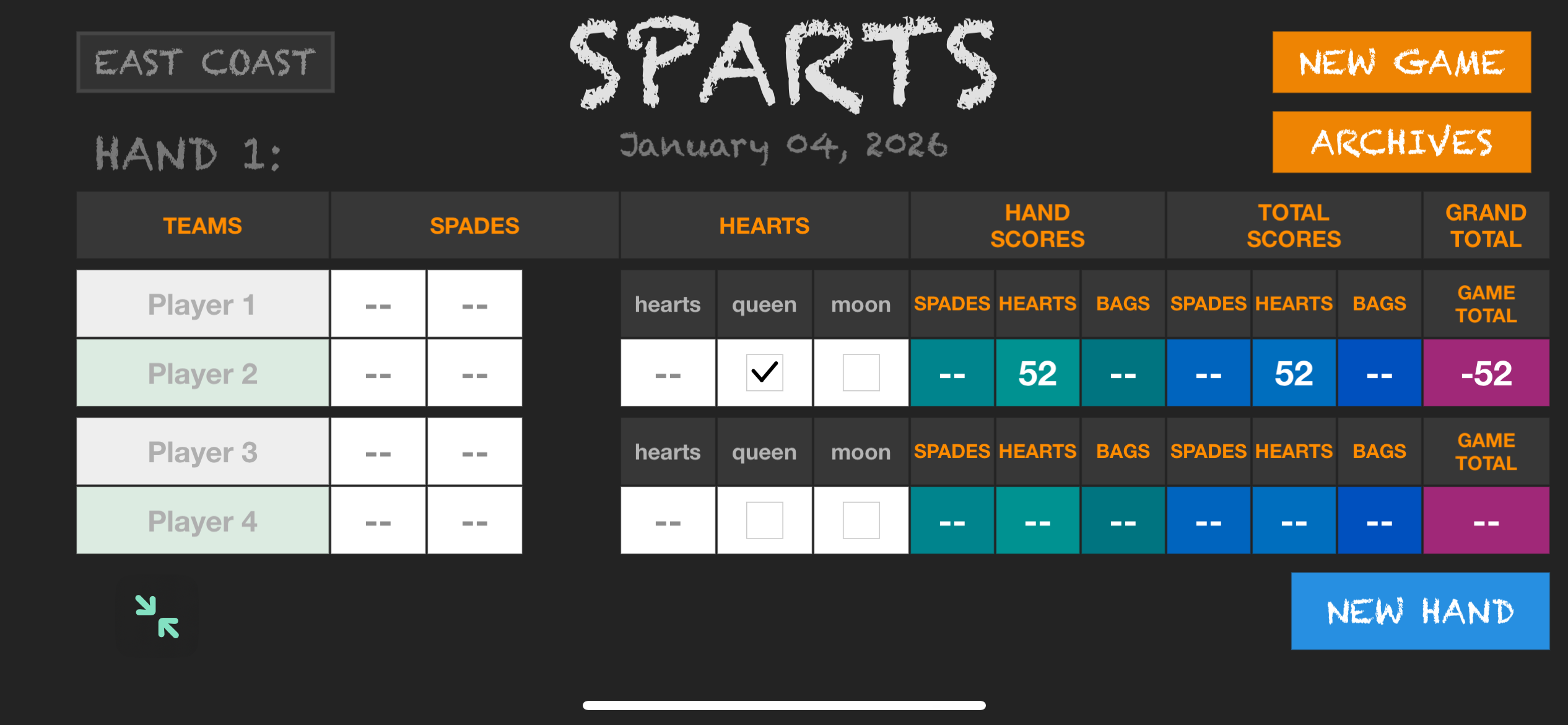 …a simple scoresheet for a card game some friends and I invented. It was also far along, I also gave it a week to get finished. I didn’t finish by the deadline again though. Close, but no cigar. Xcode trouble again mostly.