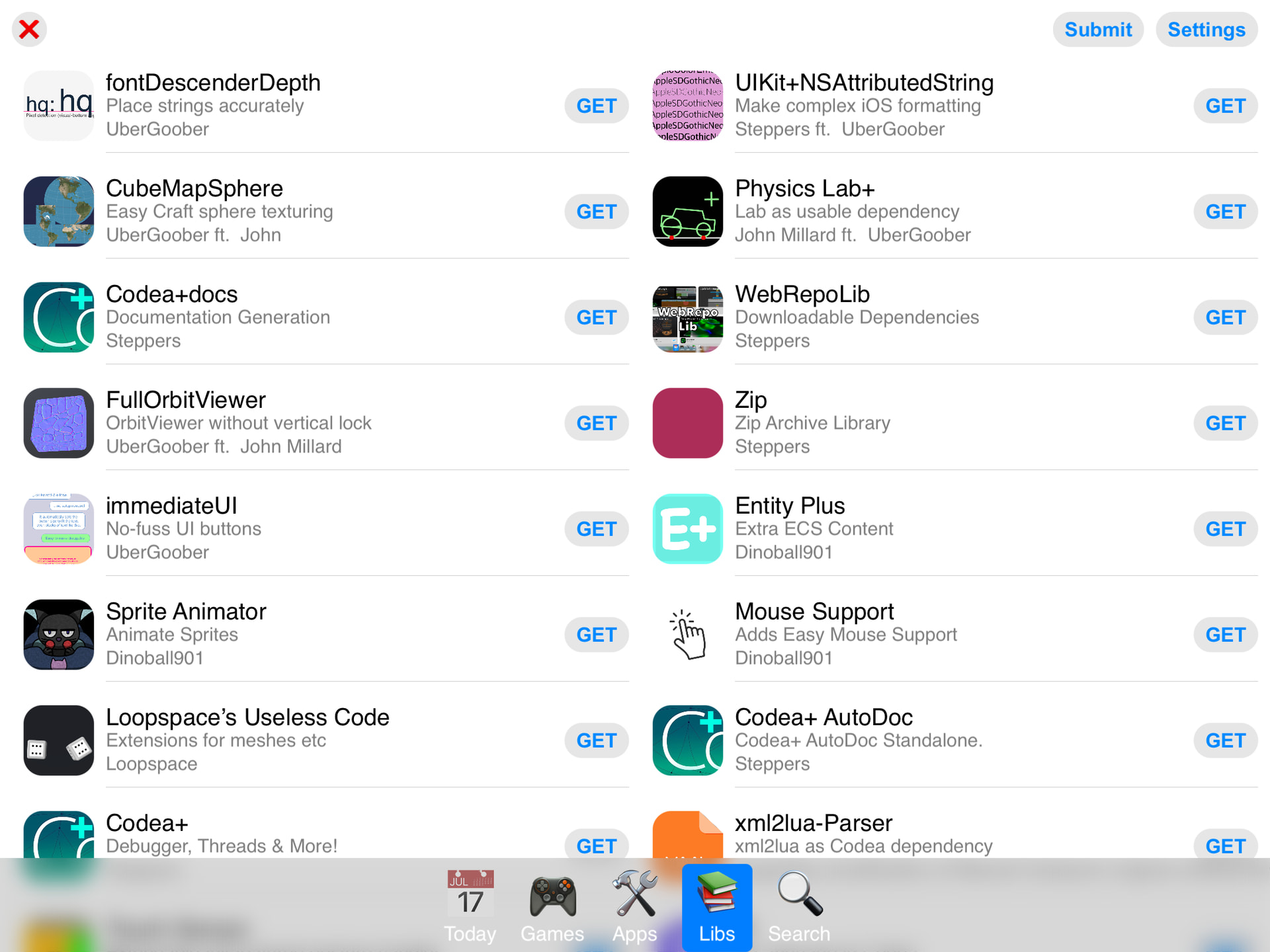 I just downloaded the file in the “Projects” section of the Codea page. The program is well produced, even though it has a few errors in its coding section before running.